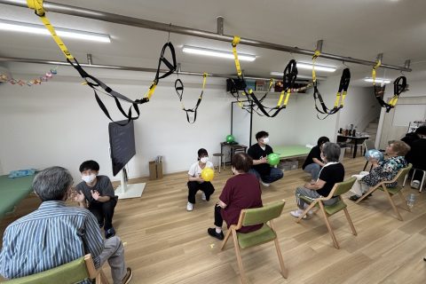 風船バレーや棒体操などのプログラムを通して筋肉の維持及びストレスの発散を行います。