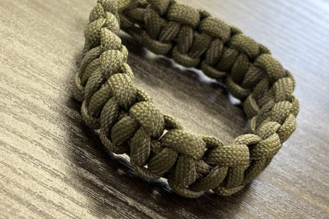 パラコード(強度の高い紐)を用いて手編みで制作します。紐の色は事前に作業療法士にお伝えください。